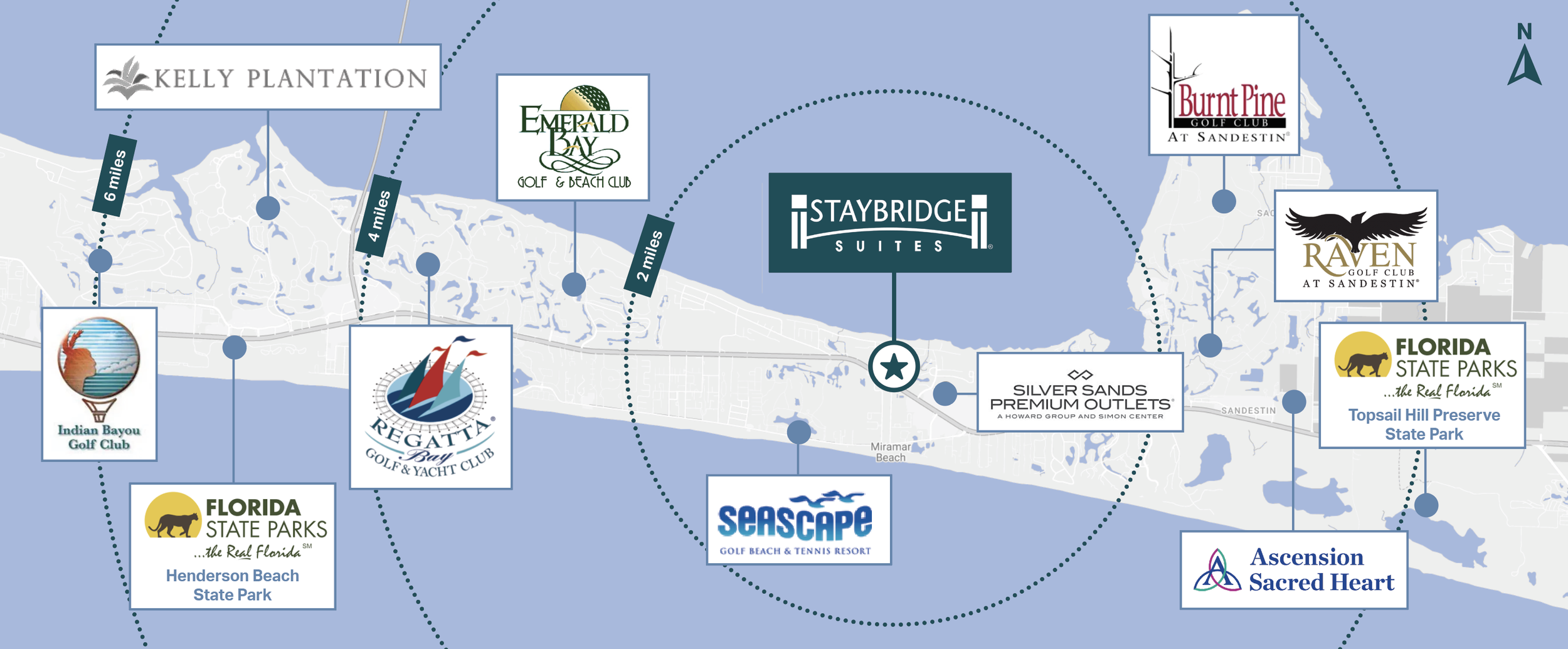 The Staybridge Suites Miramar (the “Hotel”, “Property”, or “Asset”) is a newly constructed, 116-room, all-suite Hotel located less than a half a mile from the Gulf of Mexico in Miramar Beach, Florida. Slated to open in Q4 2024, the Property offers extended-stay accommodations in one of the country’s most popular vacation destinations. This all-suite product features separate living and sleeping areas, as well as fully equipped kitchens. The Hotel was constructed to an exemplary standard with amenities including an outdoor pool, fire pit, patio, spacious fitness center, indoor/outdoor full bar, and complimentary breakfast offerings. The Asset sits near five renowned golf courses as well as the 465,000 SF Silver Sands Premium Outlets, which is home to over 110 designer and name-brand outlets. Additionally, the Staybridge Suites is proximate to world-class Gulf of Mexico beaches, Henderson Beach State Park, Eglin Air Force Base, and Destin-Fort Walton Airport.